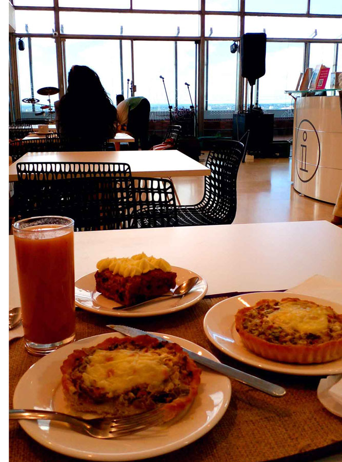 Al ingreso del mirador está la cafetería y también un espacio de venta de souvenirs.