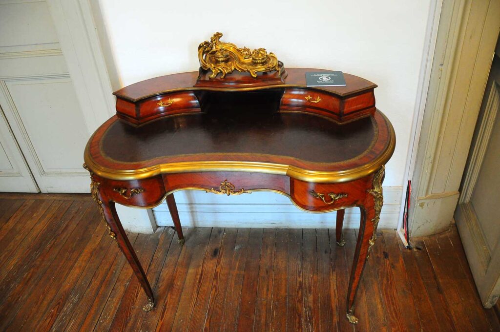 El juego de escritorio es de estilo Imperio, con una biblioteca en donde se guardaban los libros de él, separados de los de su esposa.